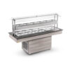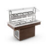 buffet restaurante quente, cubas em inox, tampo em granito, estrutura em MDF, pés com rodas