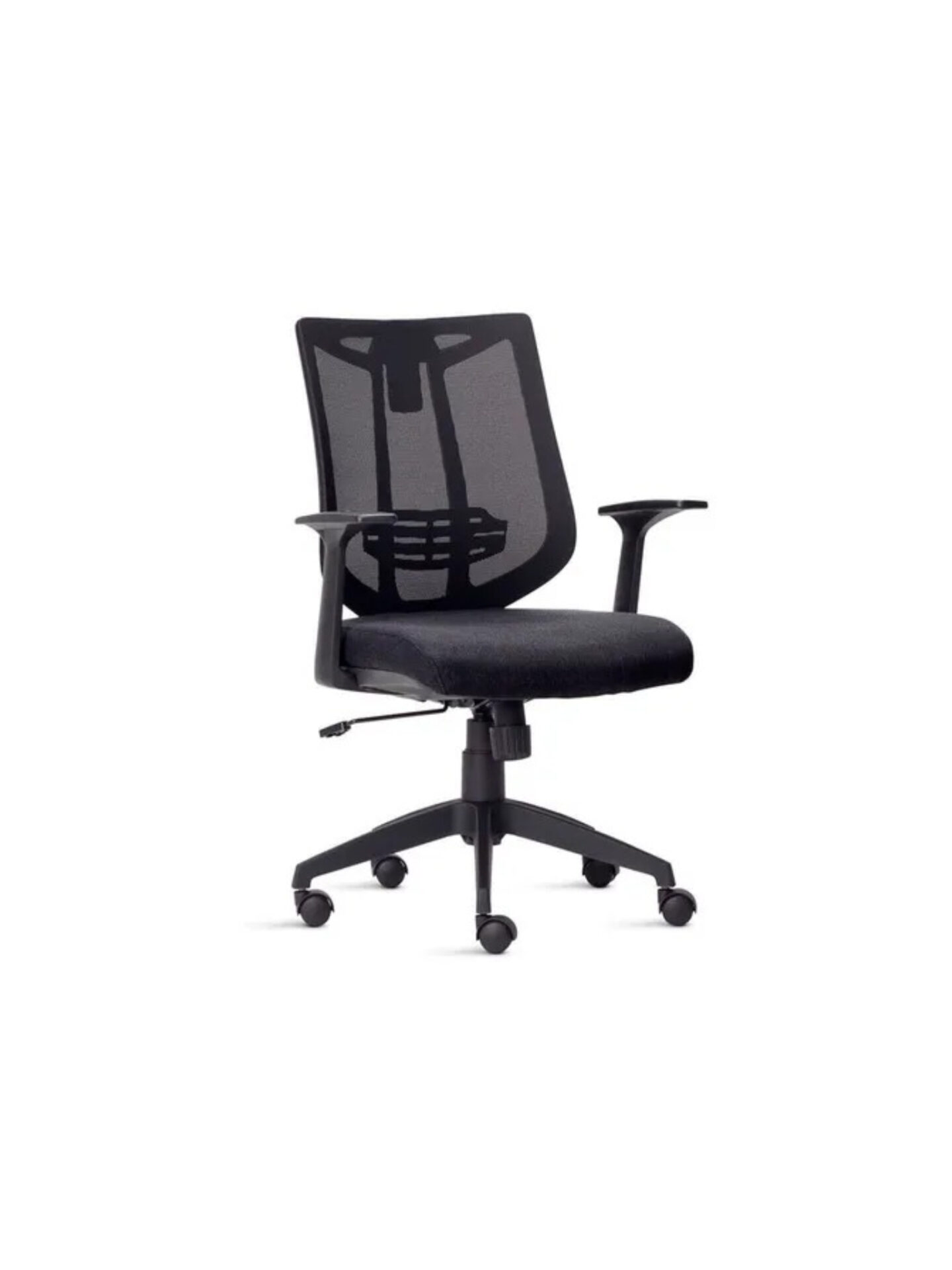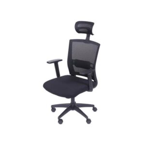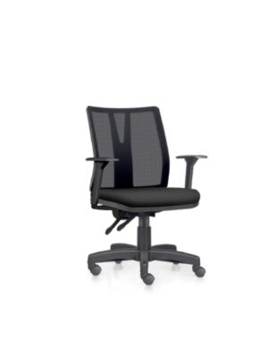 CADEIRA DIRETOR AIKA, ENCOSTO EM TELA MESH, C/ APOIO DE BRAÇOS FIXOS, BASE GIRATORIA PRETA
