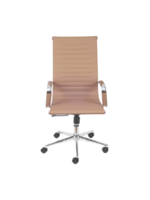 CADEIRA ESTEIRINHA ALTA EM CORINO CARAMELO BASE CROMADA