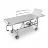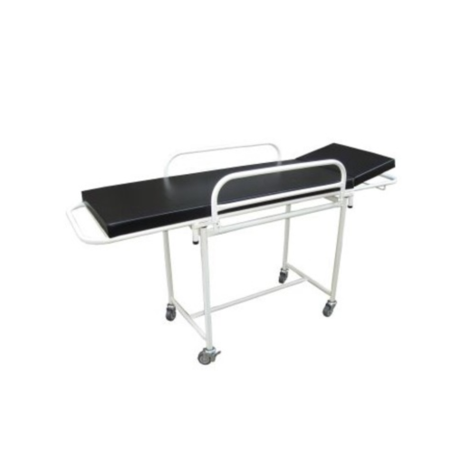 Carro maca em estrutura tubular pintado em epóxi, grade lateral móvel, leito estofado, rodízios.