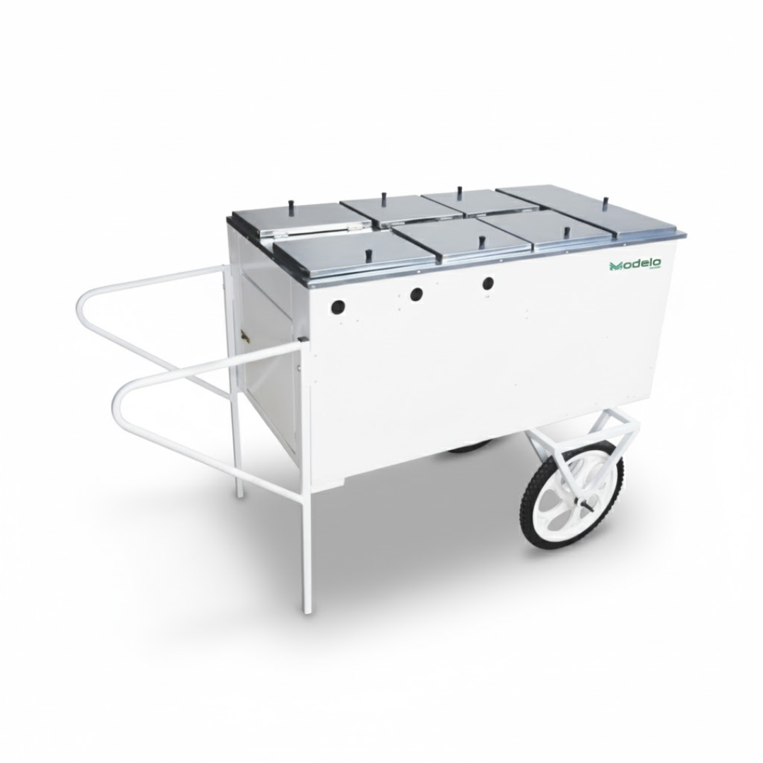 carro para lanches com 7 cavidades. (01 gelada/03 natural/ 03 quentes)