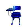 carteira universitária com assento e encosto em PVC liso, prancheta em PVC, estrutura em aço tubular com pintura em epóxi e tratamento anticorrosivo.