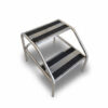 escada de 2 degraus em aço, com pintura epóxi, piso antiderrapante.