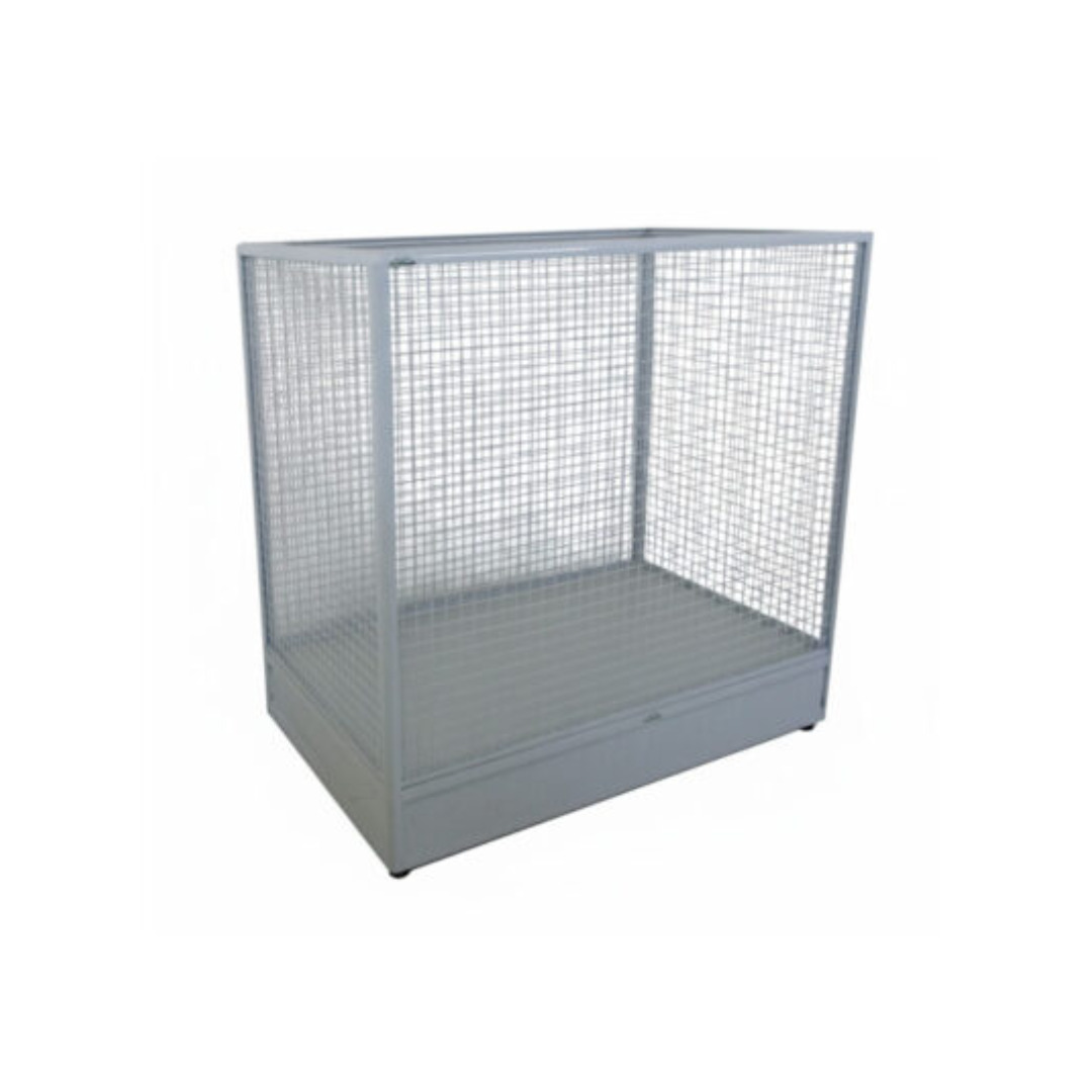 expositor de fraldas baixo, estrutura em alumínio e tela, pés com sapata.