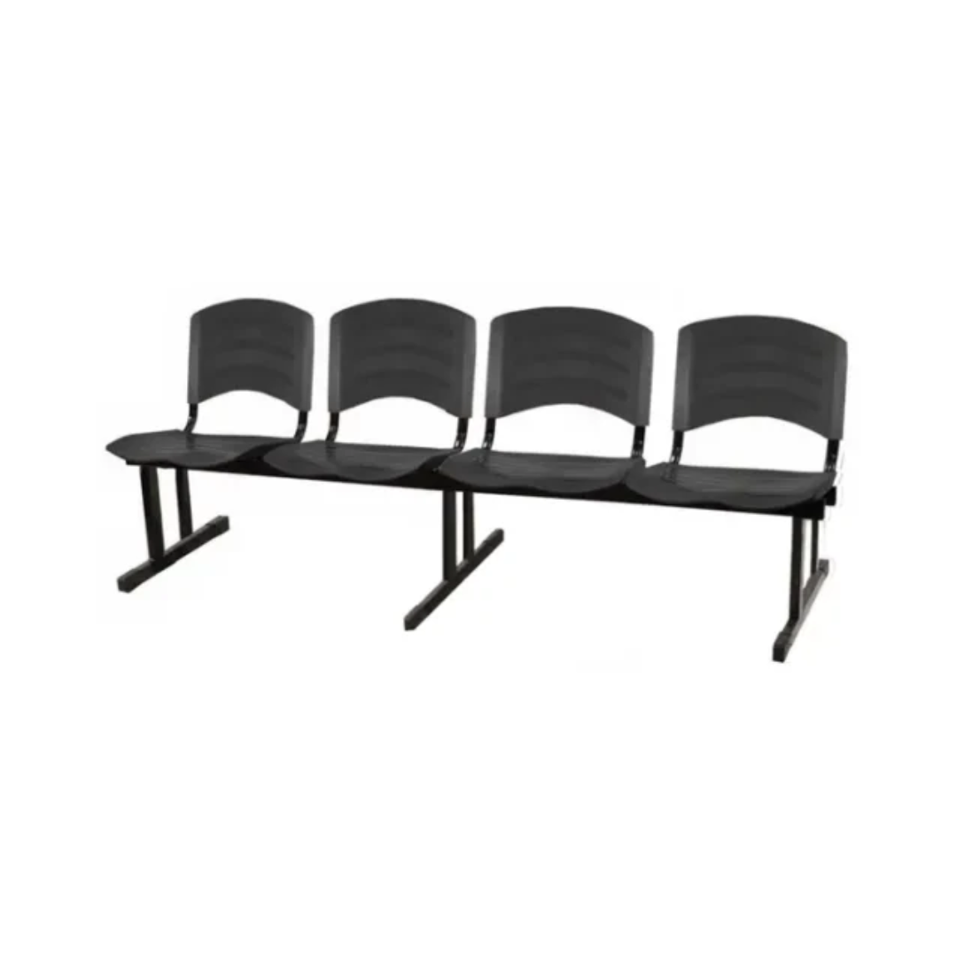 longarina slim de 4 lugares, com estrutura em aço pintado, assento e encosto em PVC