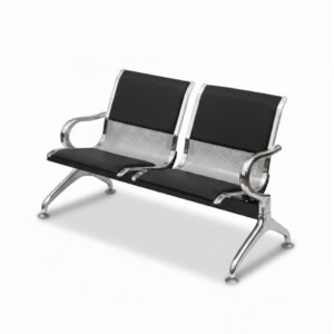 longarina slim de 2 lugares, com estrutura em aço pintado, assento e encosto em PVC