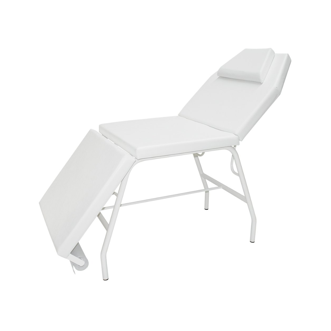 maca para estética em estrutura de aço tubular, pintada, leito estofado, com revestimento em plástico transparente, movimento dorso e pernas.