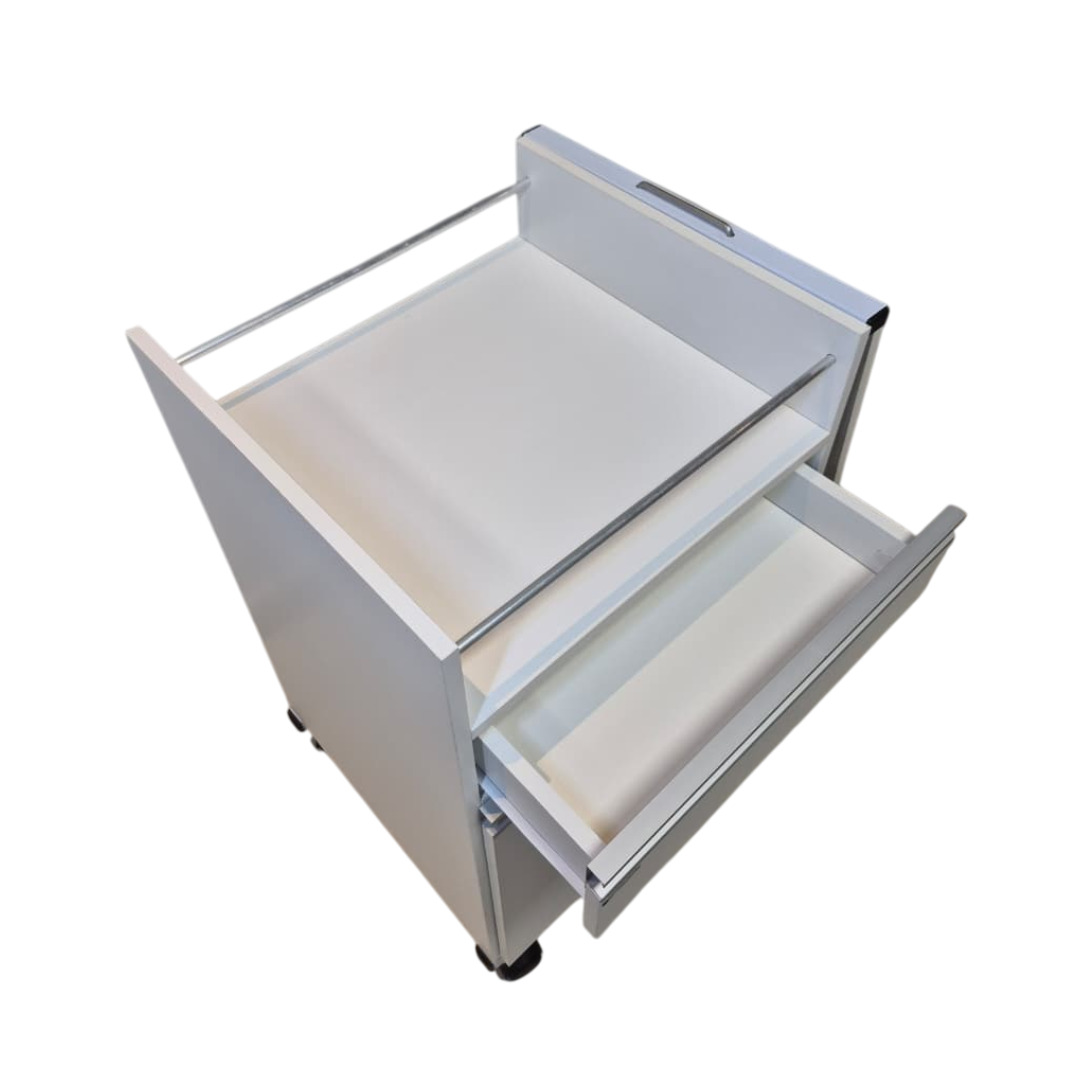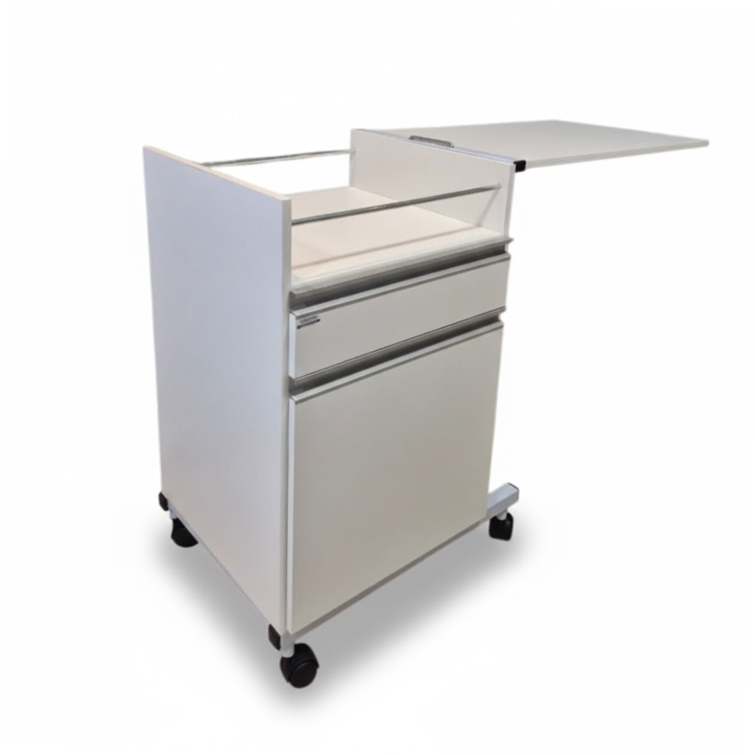 mesa de cabeceira com porta, gaveta e refeição em MDF, com roodas.