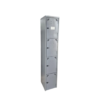 Roupeiro de aço fabricado em chapa de aço carbono 0,45 mm. Sua estrutura é composta de gabinete em chapa de aço carbono 0,45 mm, 01 par de dobradiças metálicas fabricadas em chapa de aço carbono 0,90 mm com vergalhão 4,2 mm embutido na estrutura da dobradiça e porta com estrutura metálica em chapa 0,90 para fechamento com cadeado (pitão). Possui 08 (oito) portas de 46 x 29,5 cm fabricadas em chapa de aço carbono, com perfilamento em “U” em suas extremidades, 01 par de arejadores estampados na porta, na lateral esquerda da porta, dispostos no topo superior e inferior da mesma e 01 porta-cartão estampado em sua estrutura metálica, para identificação. Roupeiro com tratamento de superfície metálica fosfatizado com zinco e pintura eletrostática pó cor cinza texturizada, com alta resistência a umidade e intempéries. Possui ainda 04 (quatro) pés em sapata niveladora de 2×1/2’’, com altura regulável, para adequação ao nivelamento do piso. Cada divisão do roupeiro possui cubagem de 54.280 cm³, com espaço para capacete. Dimensões de 195x66x40 cm (Alt x Comp x Prof). Garantia de 12 meses.